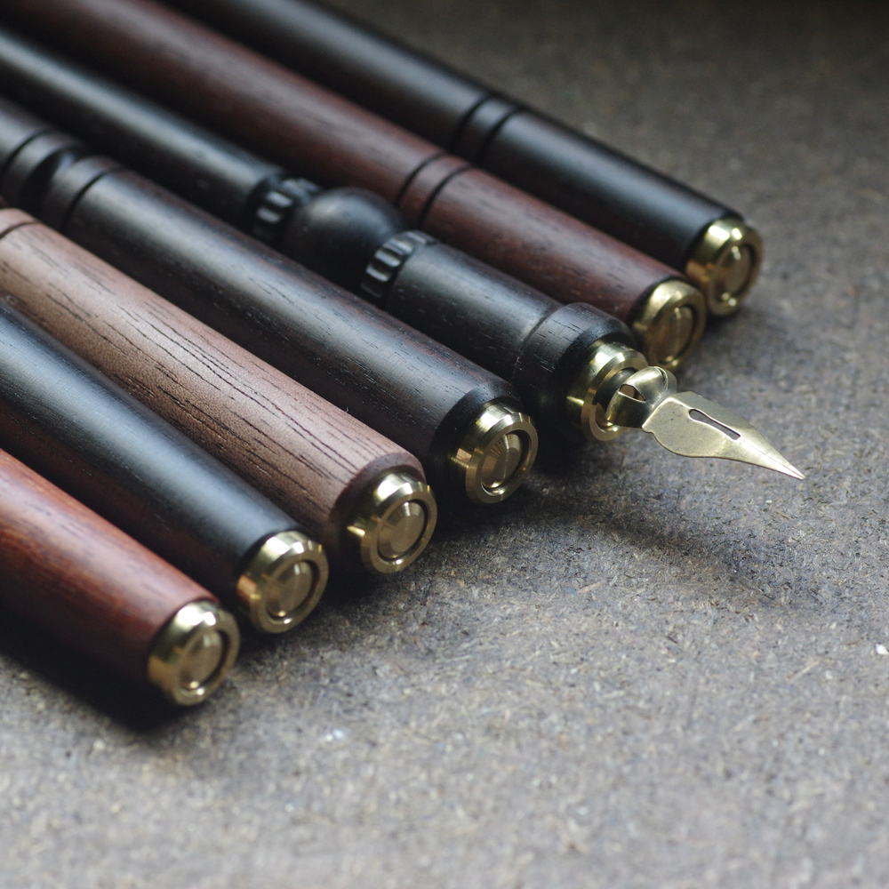 「Wood Nib Holder 」木工作家ゴロンドリーナさんと一緒に、木と真鍮を削り出して作った特別なつけペン軸です。
