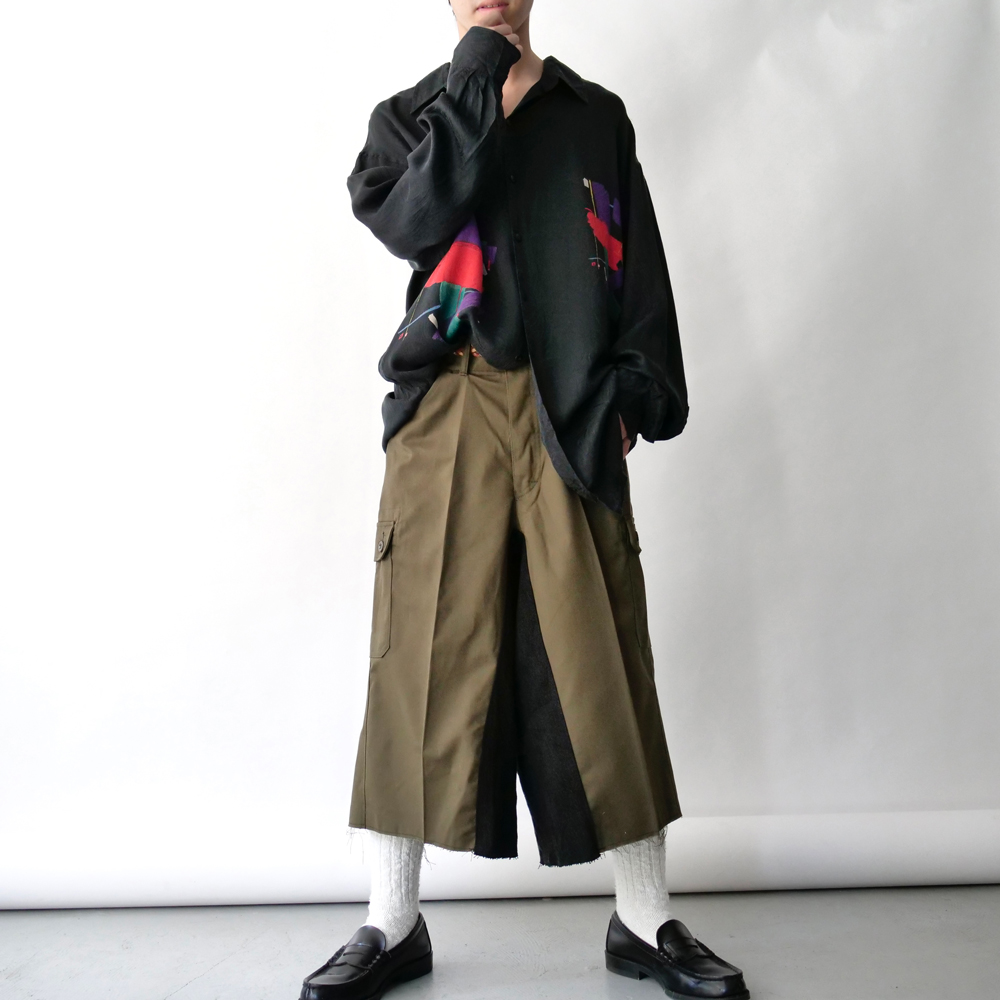 80年代シルクシャツとコットンの異素材をドッキングしたオリジナルリメイクパンツ