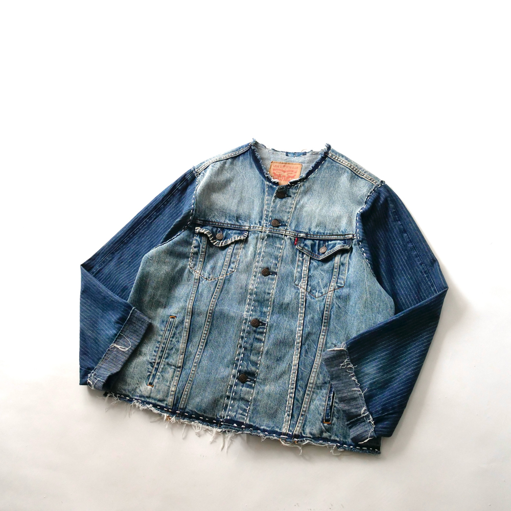 Levi'sのデニムジャケットをリメイク。日本の伝統的な手仕事である刺し子による白のハンドステッチが良いアクセントに。
