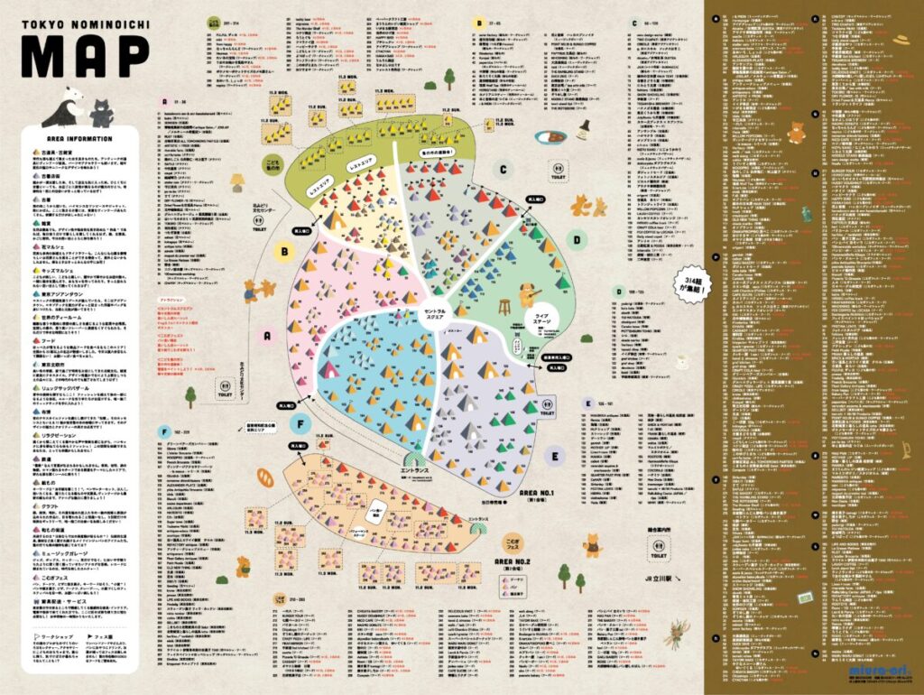 会場マップのPDFデータとコンビニエンスストアで印刷できるネットワークプリントの番号を配布中です! 開催まであと3週間、会場マップを大きな紙に印刷して、ワクワクを先取りしませんか? 公式サイトの出店者一覧やインスタグラムで情報を調べて、ほしいものリストを作ったり、お店を巡る順番を決めたり、ライブステージの時間をチェックして周り方を予習しましょう!