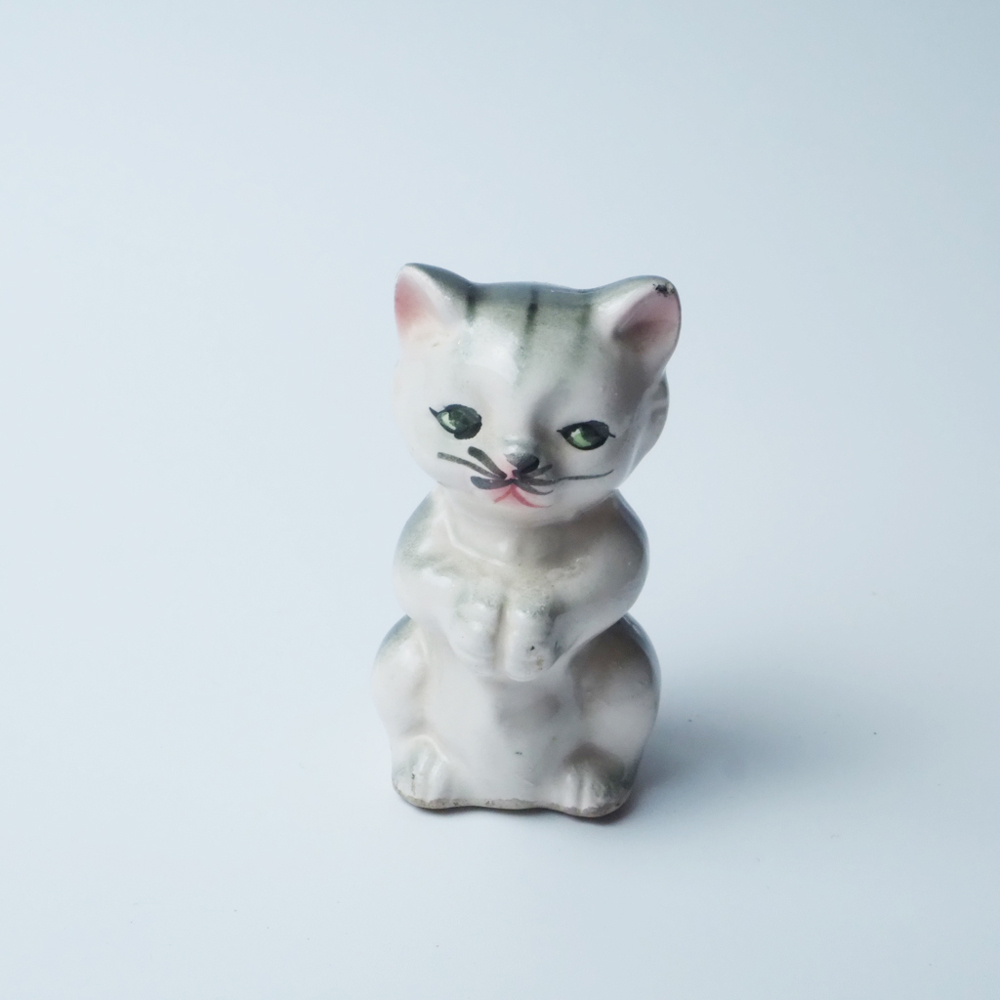 なんだか不思議な表情の陶器製ネコ。ソルト入れですが、そっとキッチンの片隅に飾っておきたくなります。