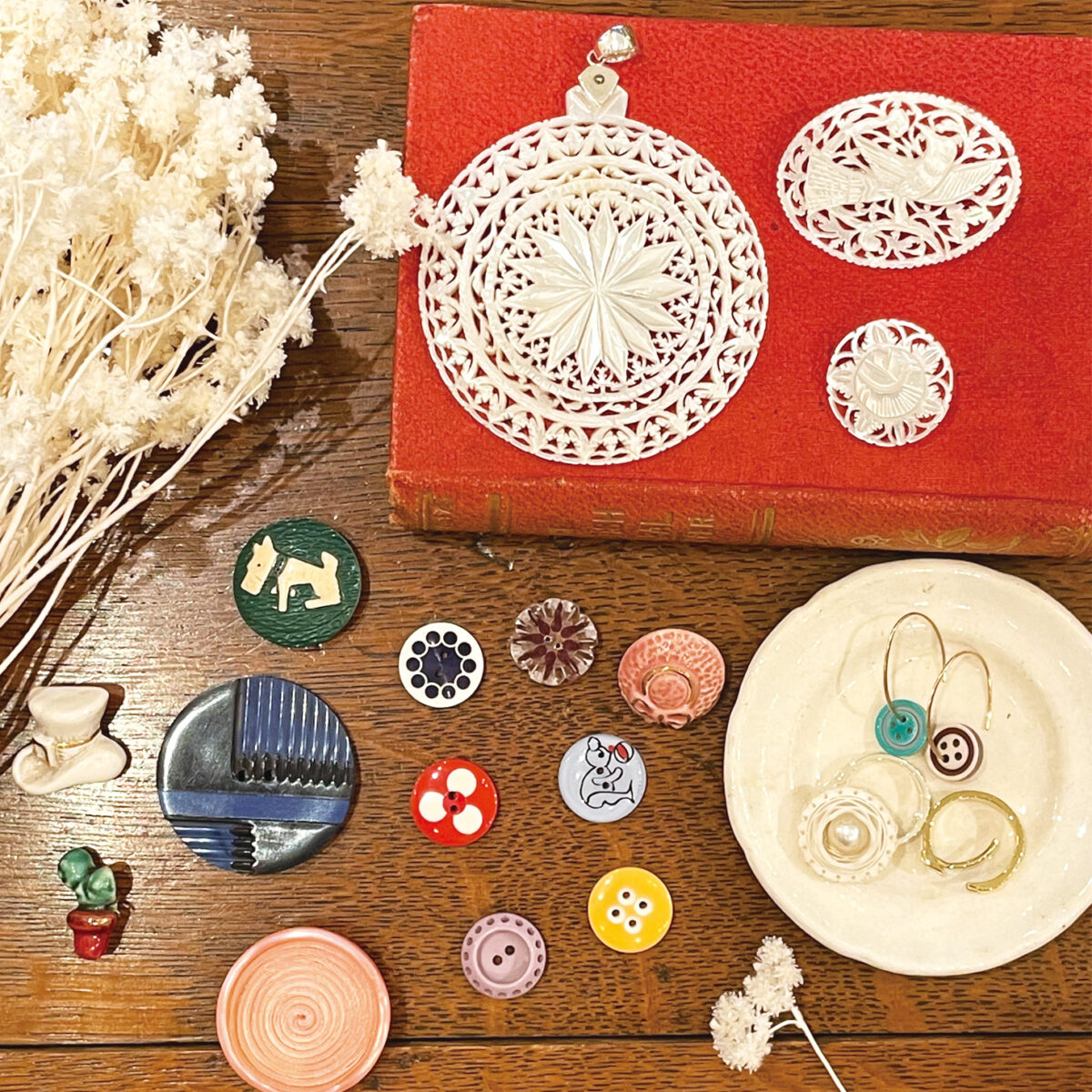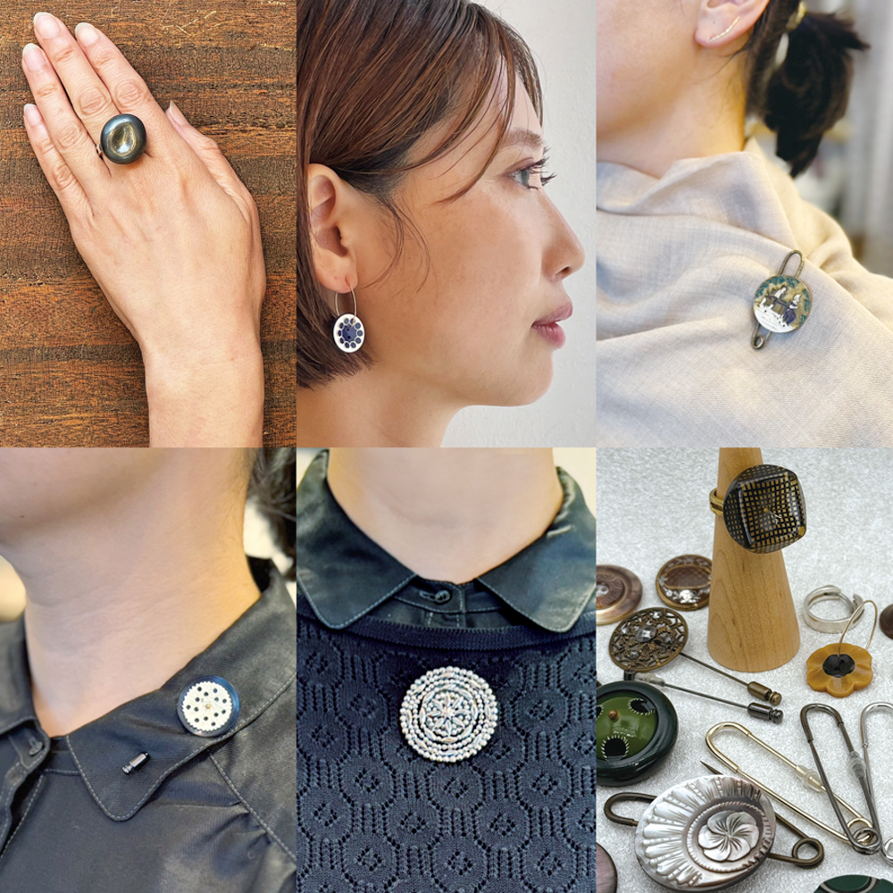 ヴィンテージボタンを楽しむためのオリジナル付け替え可能なアクセサリーたち