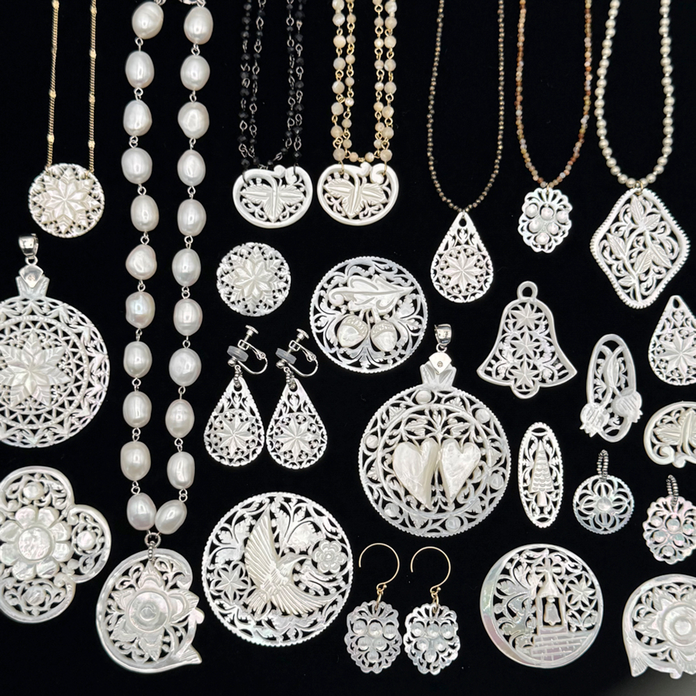 キリスト誕生の地・ベツレヘムより、1点1点職人の手によって丁寧に作られた白蝶貝のベツレヘムパールのボタンやブローチ、ネックレスなども販売しています。小さなボタンに込められた大きな魅力をどうぞ、ごゆっくりご堪能ください。