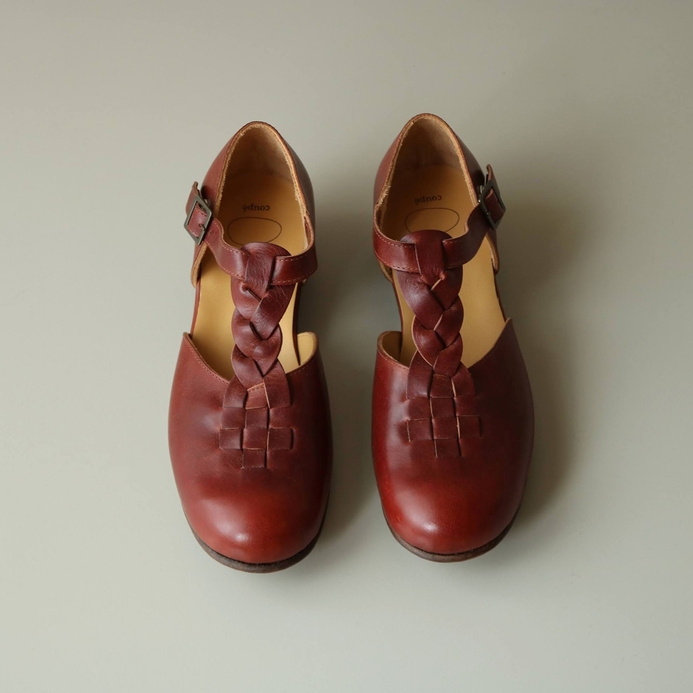 「三つ編みTストラップシューズ」サイドから見える靴下との組み合わせを楽しんでもらいたい、一年を通して履いていただけるデザインです。