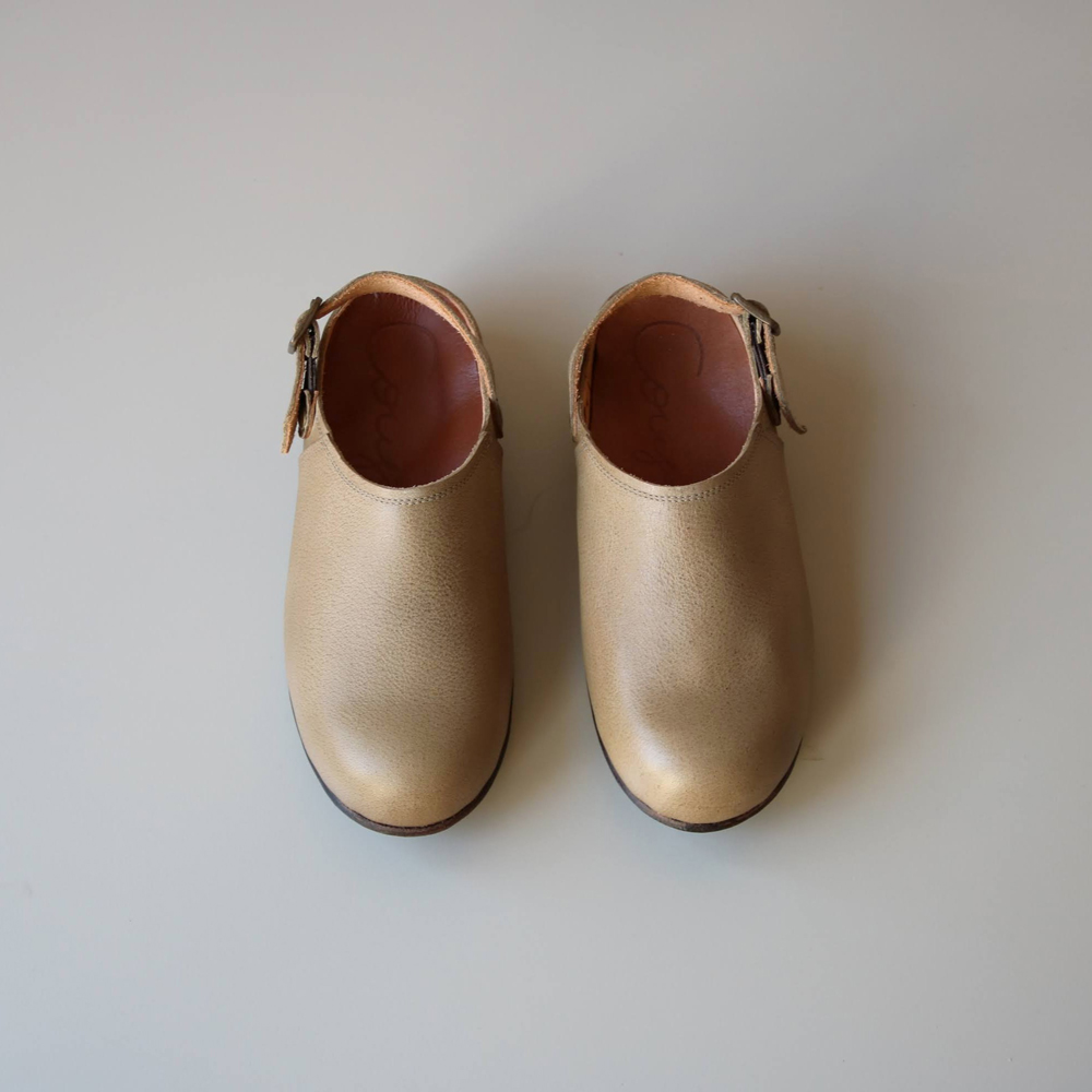 「サボ」コロンとしたシルエットがかわいいです。かかとのベルトはお好みで付けられるオプションです。