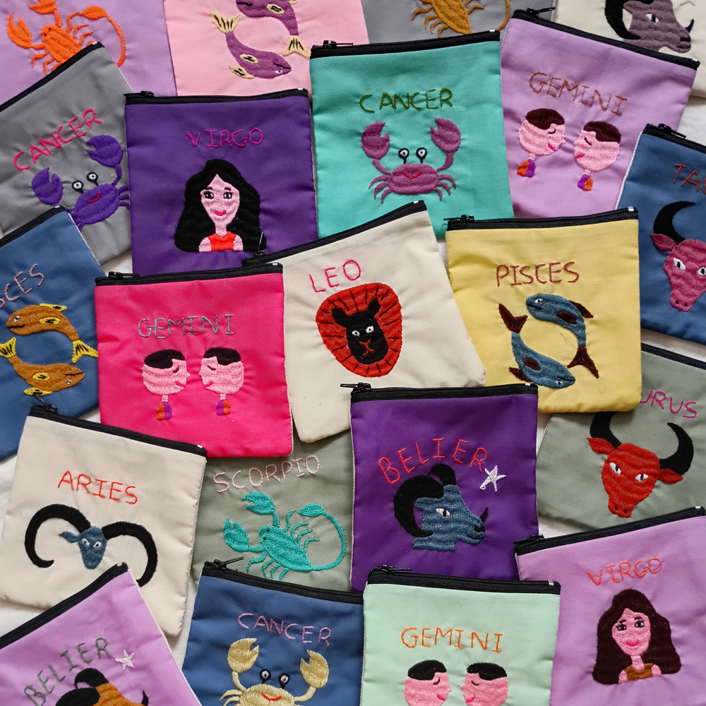 オリジナル手刺繍星座ポーチ! ラオスの女性達にオーダーしました。