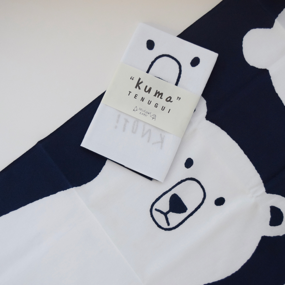 オリジナルの手ぬぐい。半分に畳むと、くまの正面と後ろ姿が!