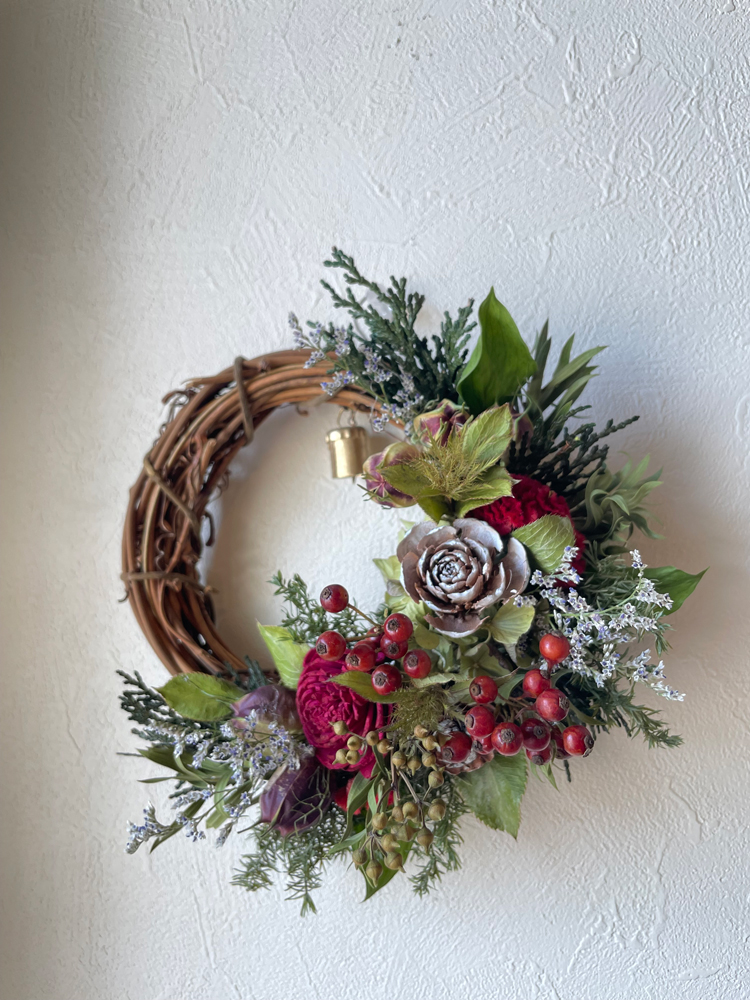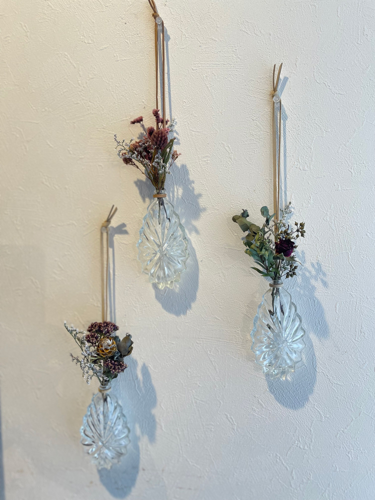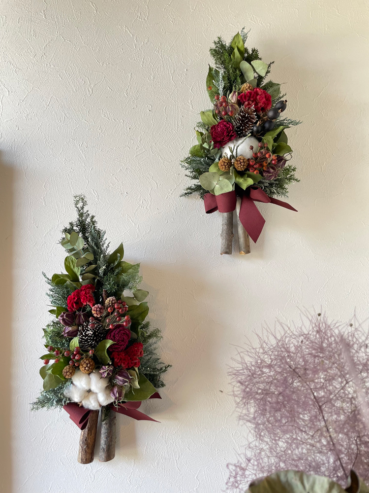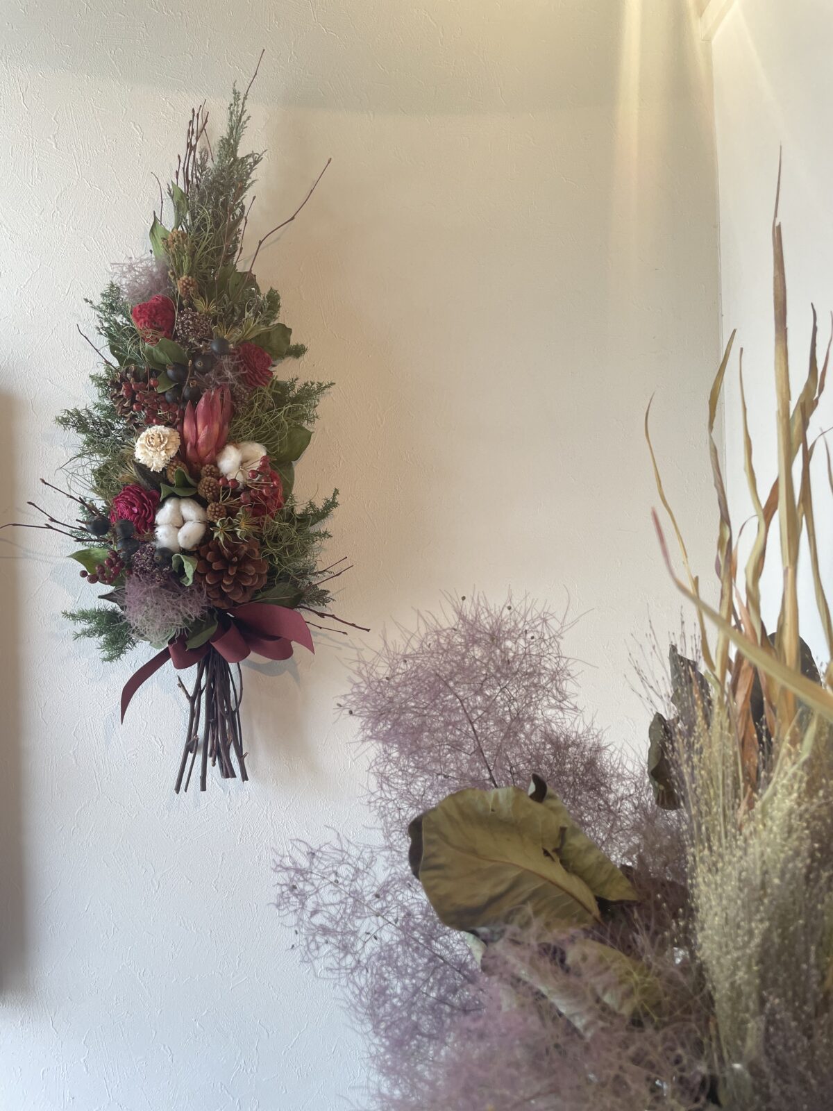 東京蚤の市では自由に選べるドライフラワーの束と、古い瓶やブリキのベースなどをお持ちいたしますので、お花と器を自分だけの組み合わせで選ぶ楽しみも。季節柄、クリスマスギフトにもぴったりのアレンジメントも沢山作っていますよ。ぜひお立ち寄りください。