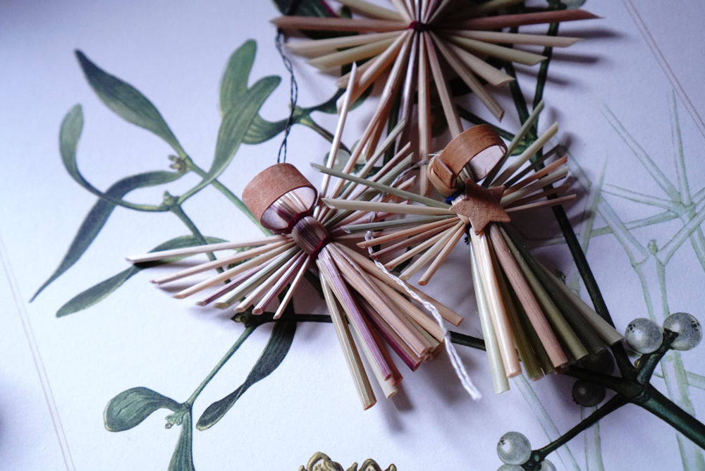 2012年より独学で北欧伝統装飾ヒンメリを作り始めました。“信州で暮らし 信州のもので ものづくりをしたい”という想いから長野県産麦藁を使用しています。“季節と共に巡る 手仕事”をテーマにこの5年くらいは県内の麦農園に伺い、秋は麦の種まき、冬を越え、春から夏にかけて除草や収穫まで手伝い、素材である麦の始まりから下処理も自ら全て行い、ヒンメリ作りをしています。
