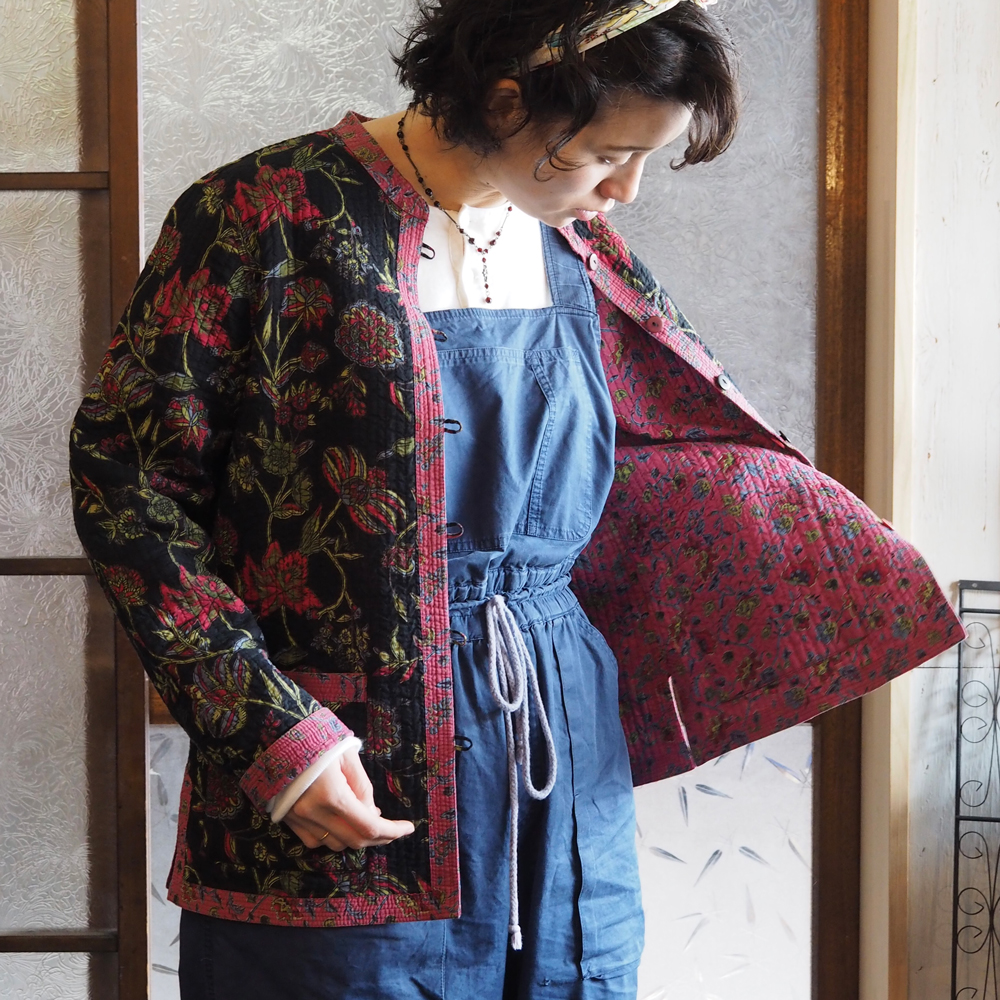 India Cottonを使用したリバーシブルのキルティングブルゾン。