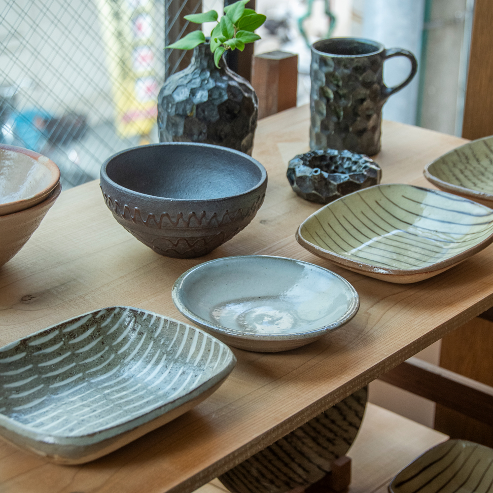 全国各地へ足を運び、目で見て、手に取り、そのものの本質を大切に商品選びをしています。蚤の市の会場でも、個性豊かでひとつひとつ目にするだけでも楽しい気持ちになるようなうつわから、自分の暮らしを振り返ったり、食卓を想像したりしていただけたらと思います。