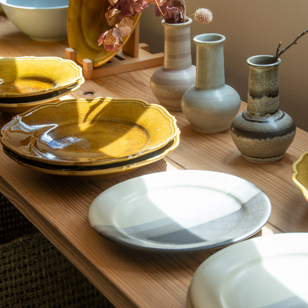 兵庫県淡路島で制作される「Awabi ware」さんのうつわ。和食、洋食や中華料理などのお料理は勿論、デザートやフルーツも盛り付けたくなるうつわです。花器もあわせてご覧ください。