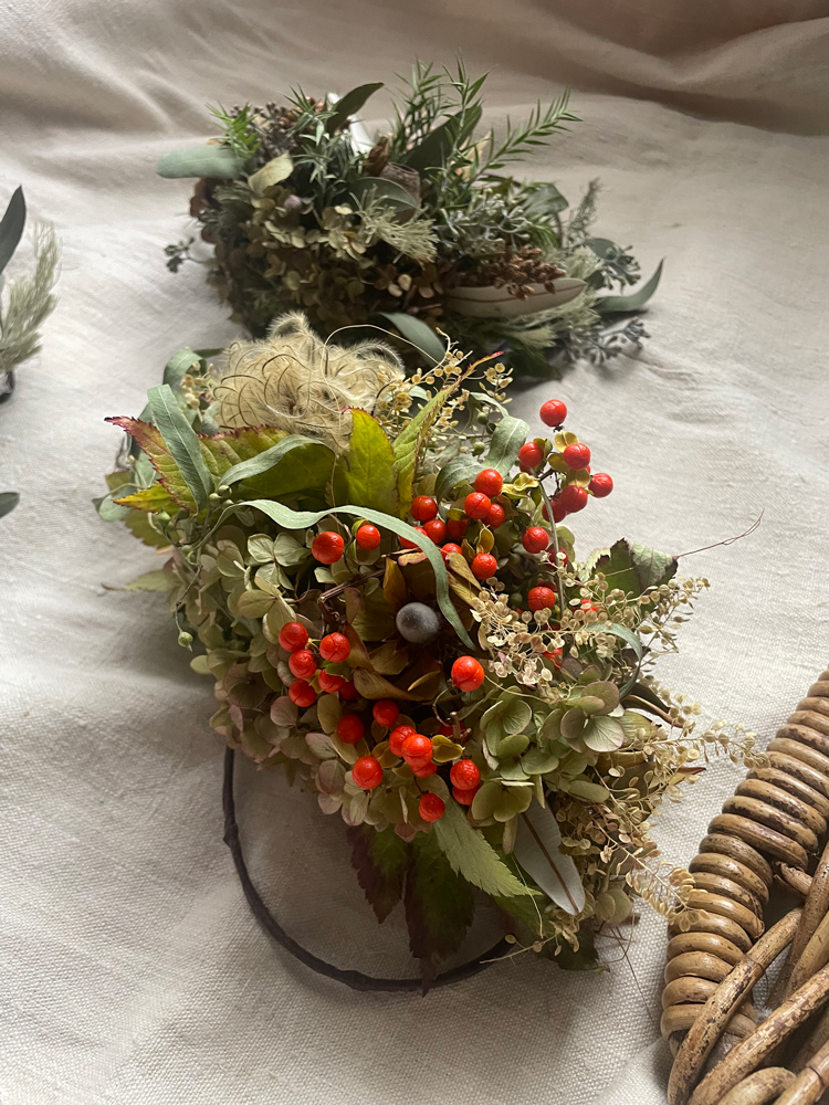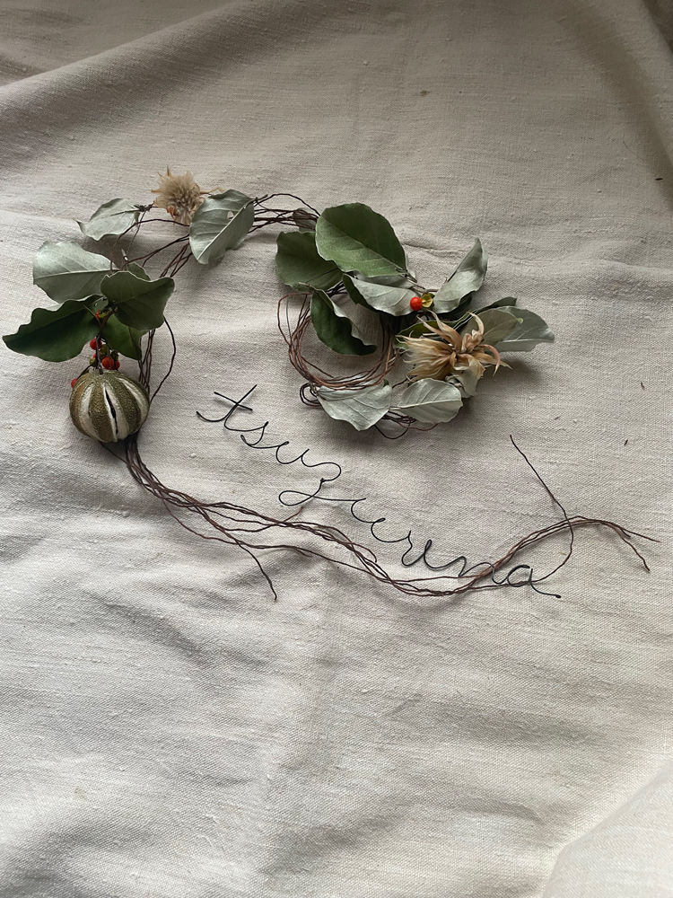 季節の植物のガーランド。クルッと丸めてリース風などアレンジも色々とお愉しみください。
