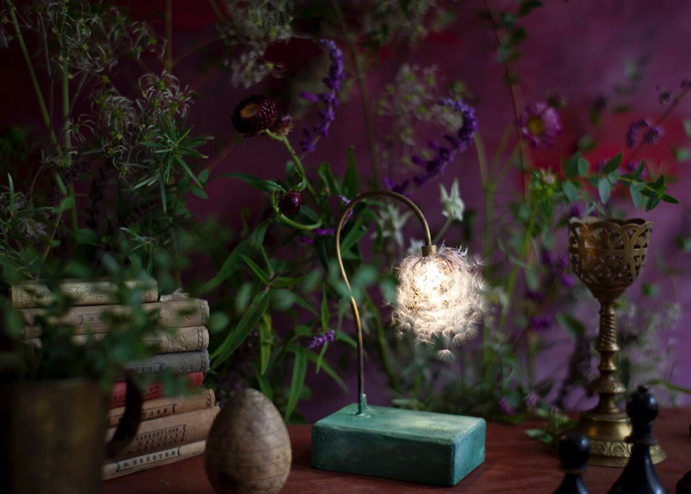 森の小さな灯 本物の植物を使った灯の作品。海外での評価も高いアート作品です。