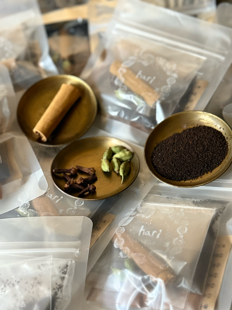 ご自宅でお好みのマサラチャイが楽しめるキット。レシピ付きでギフトにもおすすめです。