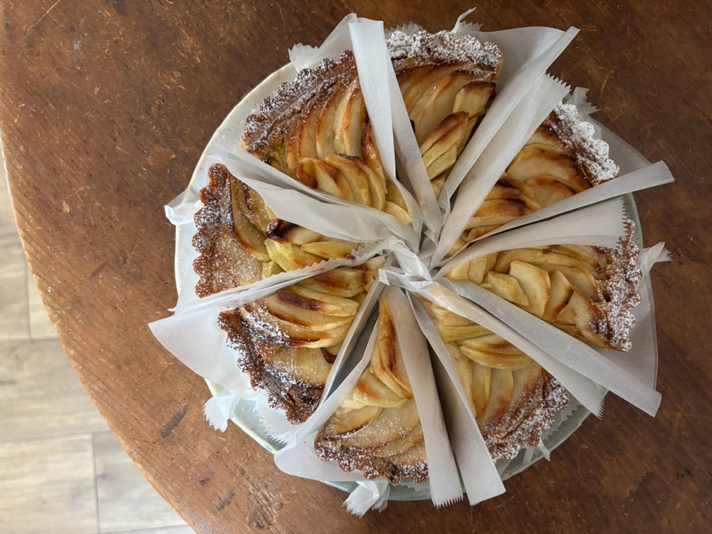 「タルト(リンゴシナモンクランブル)」 甘酸っぱい紅玉リンゴのタルトにシナモン香るクランブルのせ(他、洋梨シナモンクランブル)