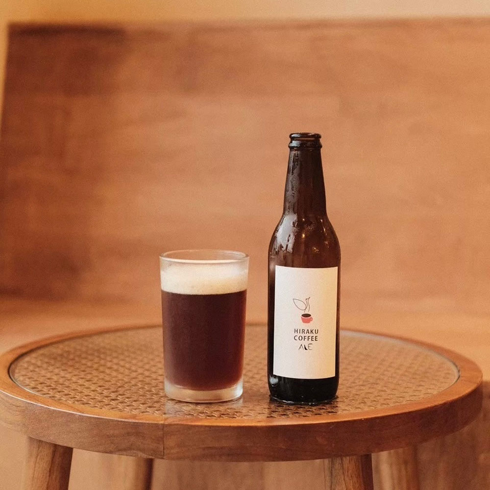 HIRAKU・オリジナルコーヒーエール。店舗がある千代田町のビール麦とHIRAKUのエチオピアコーヒーを使用したフルーティーなクラフトエール。