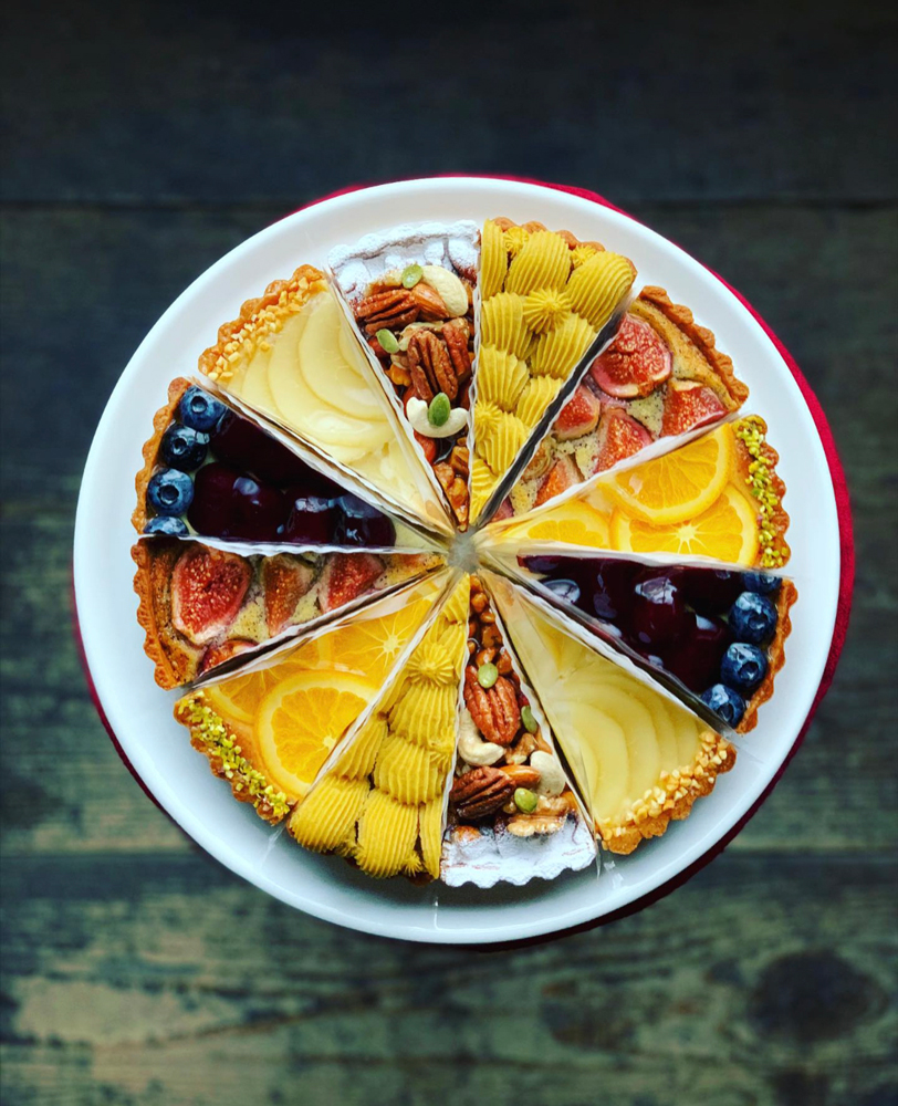 甘すぎずに焼いたお店の定番のタルトをはじめ、季節のタルトをお持ちします。