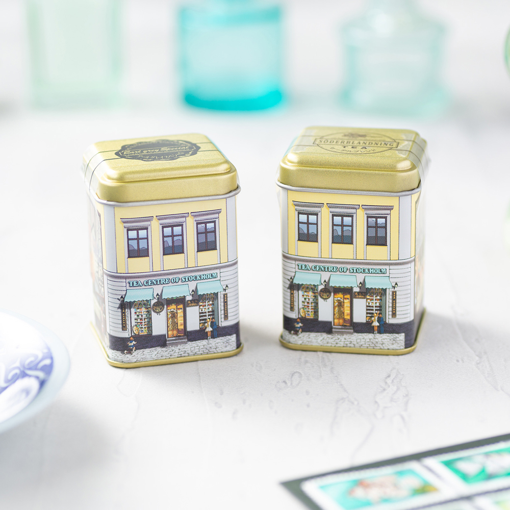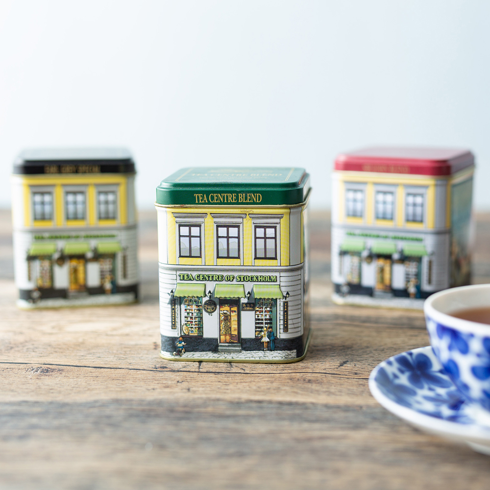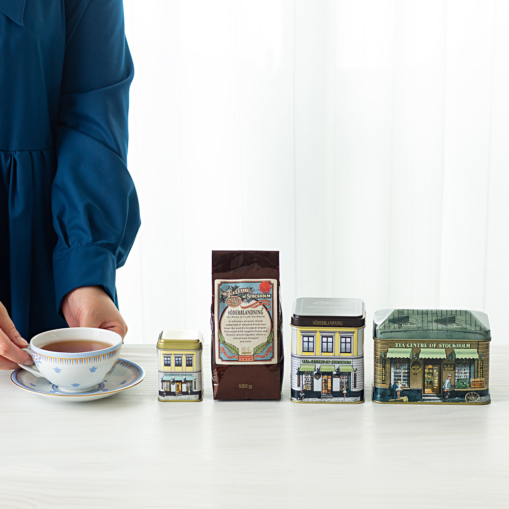 北欧紅茶の缶デザインは本国スウェーデンのティーショップの外観を模したデザイン。紅茶を飲んだ後の缶は小物入れとしてもお部屋のインテリアとしてもGOOD!
