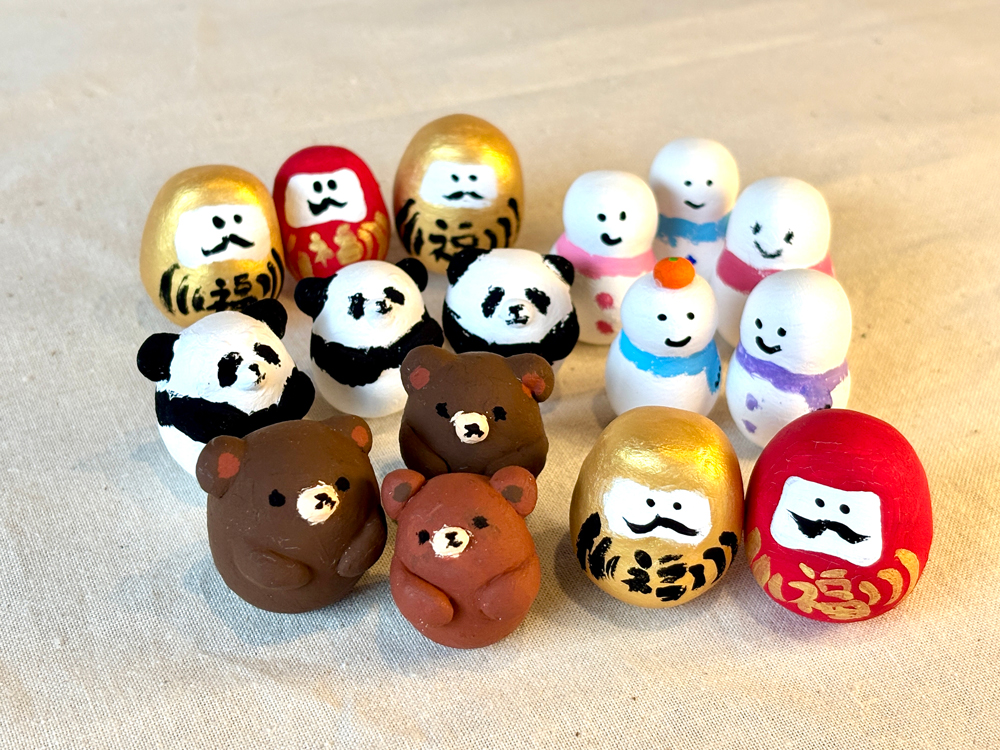 たくさん並べてもかわいい起き上がりこぼし。いろんな表情があるので、お気に入りの子を見つけてください。