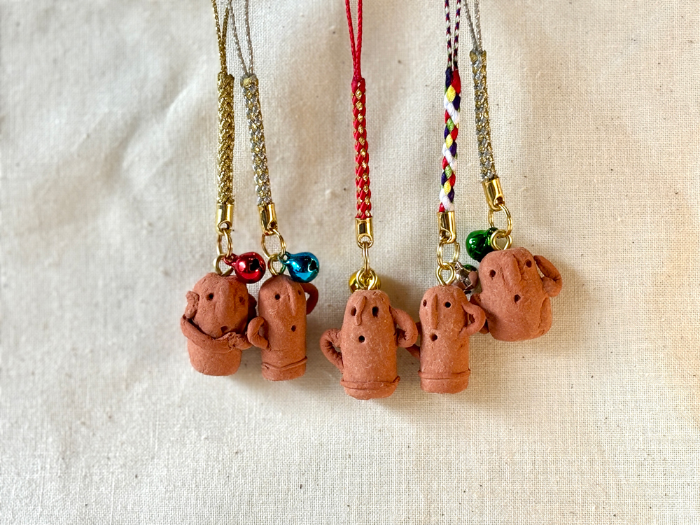 いがまる弟は、はにわ大好き! こんなストラップあったらいいな、を作ってみました。目や手を作る細かい作業をがんばりました。
