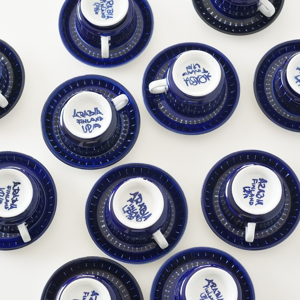 ARABIAヴィンテージ「バレンシア」のデミカップ&ソーサー。バレンシアの中でも裏面にハンドサインが施されているのは1960年代に生産された物のみ。大変貴重なシリーズです。