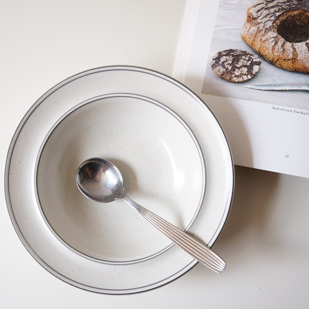 スティグリンドベリがデザインを行った「ビルカ」のプレート。リンドベリ自身が「生涯のヒット作」と呼んだのも納得。機能性と美しさの両面を兼ね備えたヴィンテージ品です。
