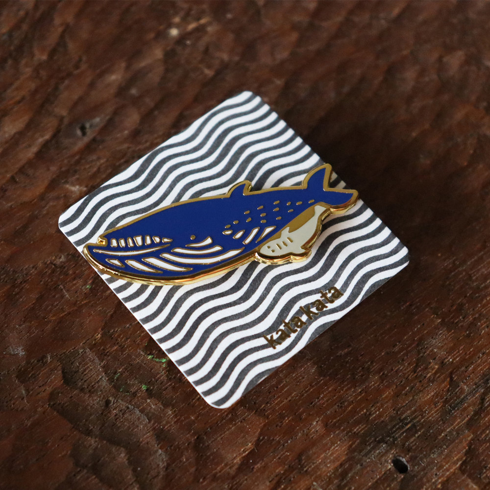 ゆったり泳ぐクジラをモチーフにした、エナメルピン。小判鮫も一緒です。