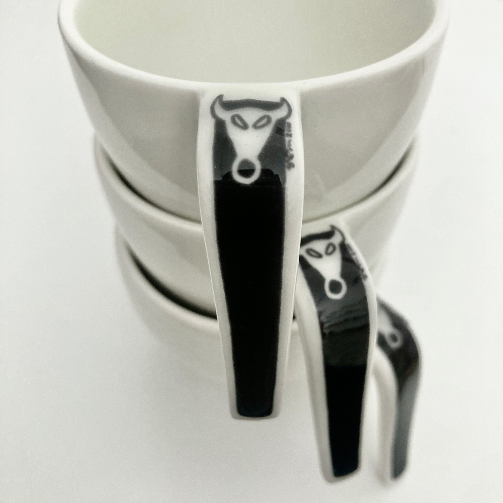 2000年にARABIAから数量限定販売されたEGOXシリーズ。洗練されたデザインにゆるい牛の絵が描かれた、ギャップ萌えなレアアイテムです。