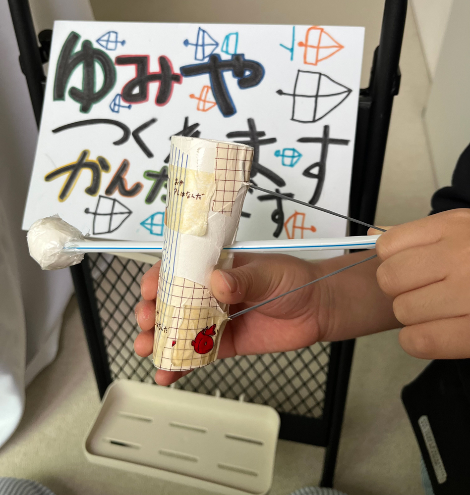 弓矢のワークショップは、小学1年生のそうたが担当します。簡単で楽しい弓矢を一緒に作りましょう。