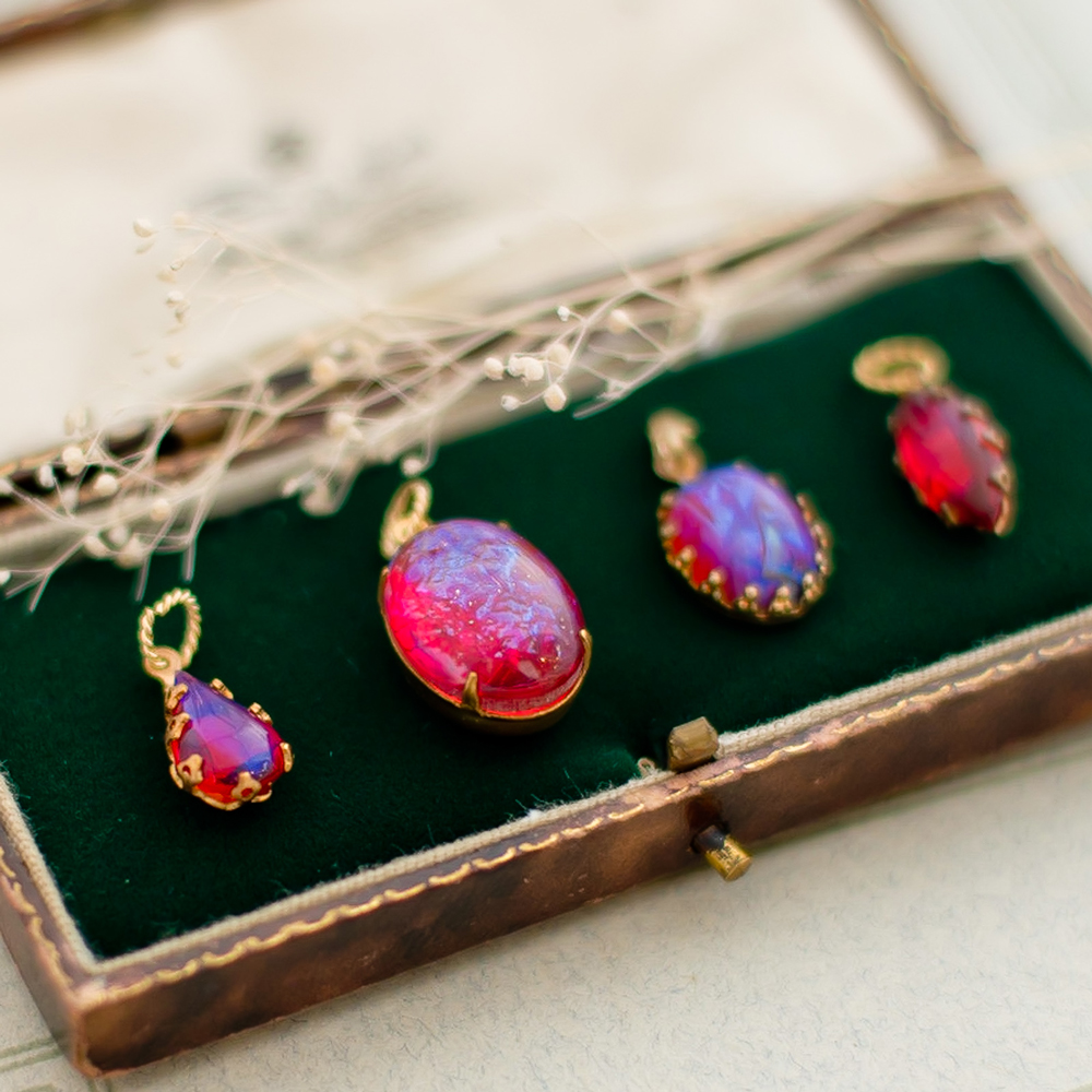 ガラスの裏面から精巧に彫られたインタリオペンダント、星のように輝くプリズムスターパーツ、一度見たら忘れられない貴重なサフィレットなどなど、東京蚤の市ではなんと2000種類以上の貴重なパーツが並びます! 売り切れたらもう二度と手に入らない、一期一会のヴィンテージ。ぜひお早めにご覧くださいませ。ブースはスミレ色のテーブルが目印。お待ちしてます!