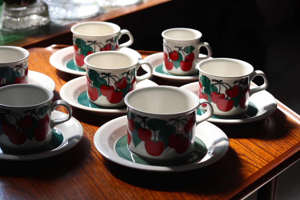 フィンランド語で「さくらんぼ」を意味するARABIAの「kirsikka」シリーズ。 レトロなデザインが新鮮に感じます。