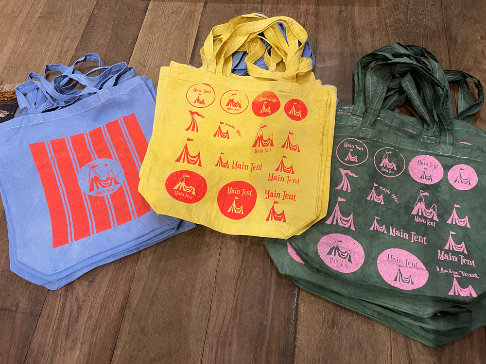 手染め、手刷り、一枚一枚微妙に表情のちがう、オリジナルブックバッグ。