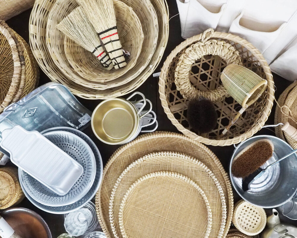 1945年に東京・日本橋馬喰町で創業。現在は自然素材を中心とした生活道具をあつかう荒物問屋です。荒物という言葉自体、近ごろあまり耳にしなくなりましたが、ほうき、ちりとり、ざるなど、少し前まではどこにでもあったような簡単なつくりの日用品のこと。松野屋では国内外に直接足をはこび、町工場や閑散期の農家などで作られる日用品などを仕入れると同時に、生産者とともに今の時代のニーズにあったオリジナル商品を開発してきました。