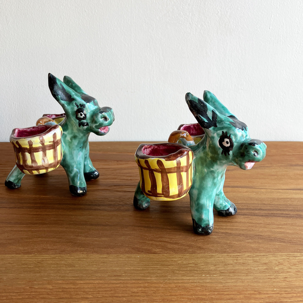イタリア、デルタ焼きのロバのフィギュリン/小物入れ