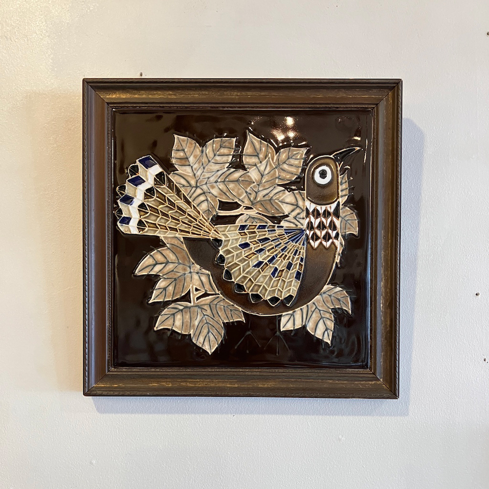 1970年代イギリス、マジョリカ焼きの鳥の陶板