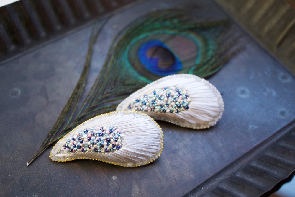 さりげなく溶け込む白い極楽鳥のブローチ! イヤリングやピアスもあります!