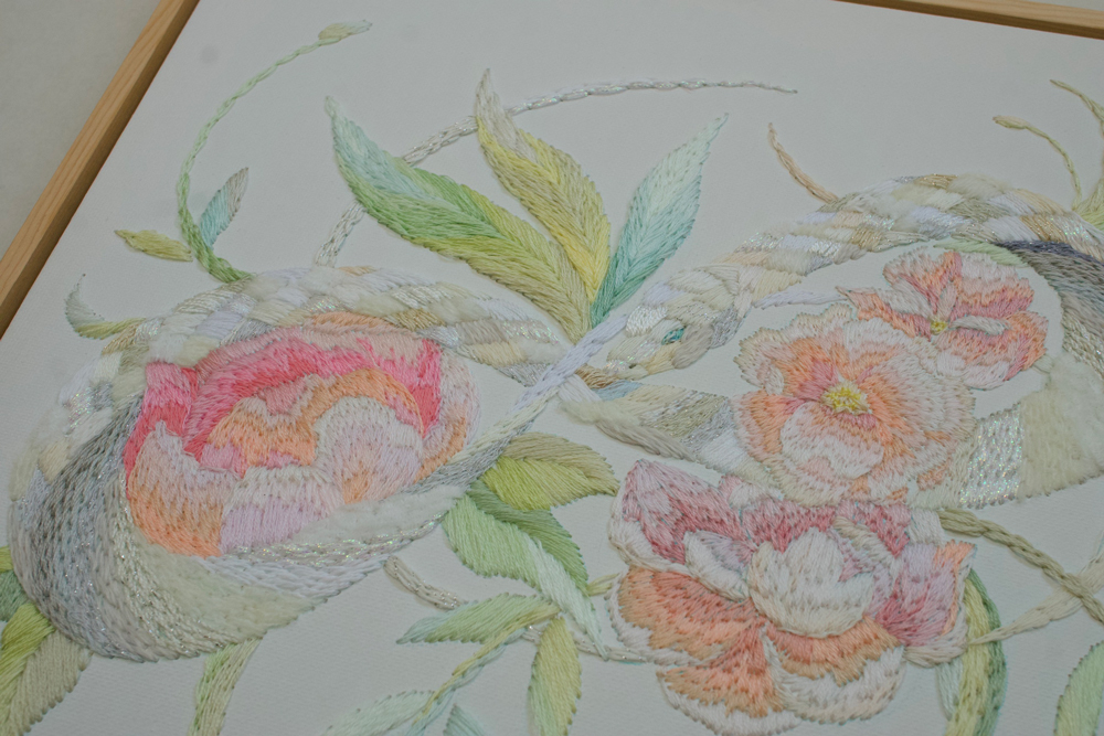 刺繍でアート作品やオリジナルの雑貨を作っている「okada mariko」です。絵を描くようにして刺繍をすることから自らを“painting stitch”と名付け、動植物や自然物などをモチーフに、祈りを込めて制作をしています。普段は東京を拠点に画廊やギャラリーでの個展やグループ展の活動のほか、手紙社が手掛ける布博や蚤の市に出展をしております。