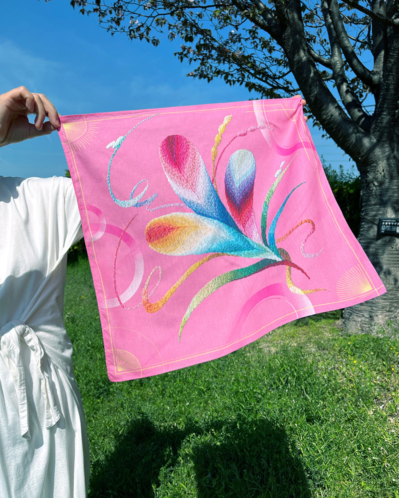 首元や手元のアクセントにもなる作品をプリントしたハンカチ