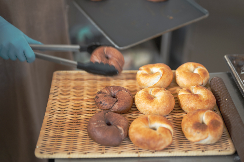 「オーガニックチョコチップベーグル」大きめの粒のオーガニックチョコチップをたっぷり混ぜ込んでいます。