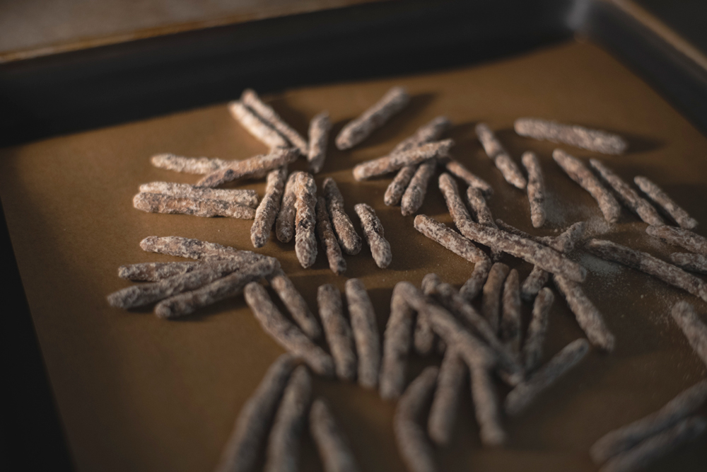 畑の桑の実を摘み、セミドライにして練り込んだかりんとう。噛むほどに桑の実の風味と甘みが広がります。