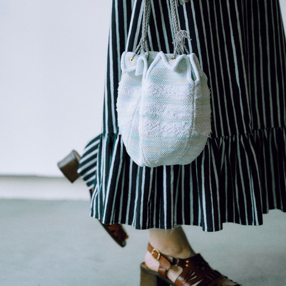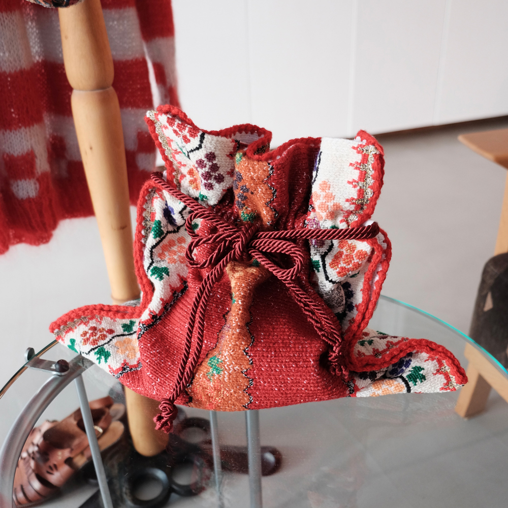 当店オリジナルのアップサイクルブランド「marmelo」のアイテム。ヴィンテージの素材を使った新作をお持ちします。