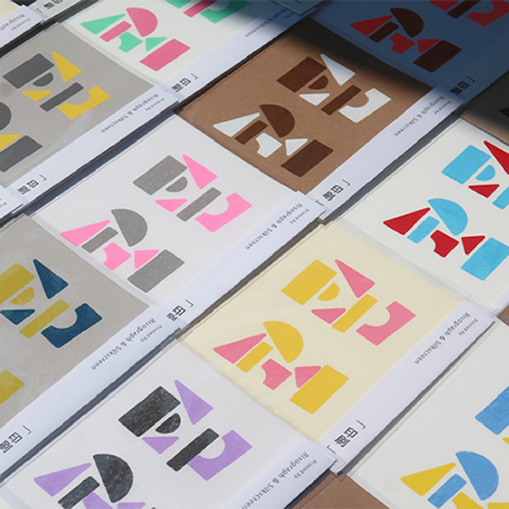 「印刷カード」 1色はリソグラフ印刷で、もう1色はシルクスクリーン印刷で手刷りしたスペシャルカード
