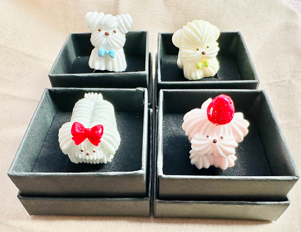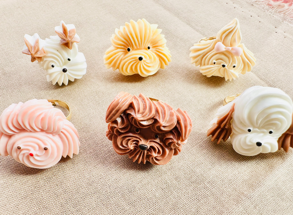 ホイップ犬のゆびわ。ピンバッチも持っていきます。