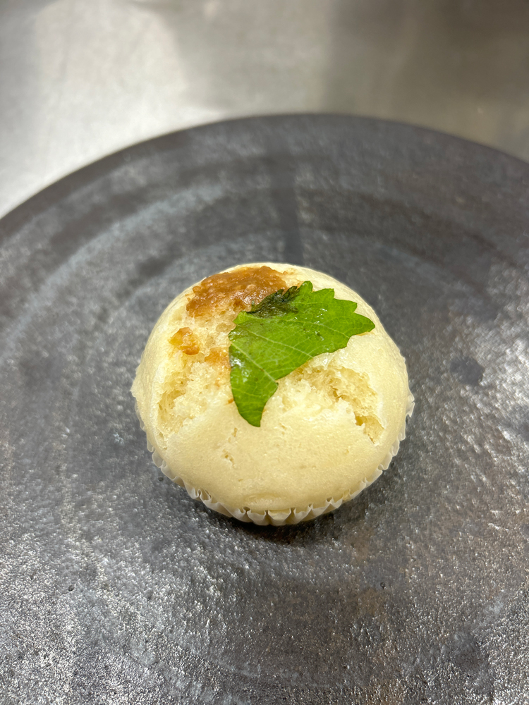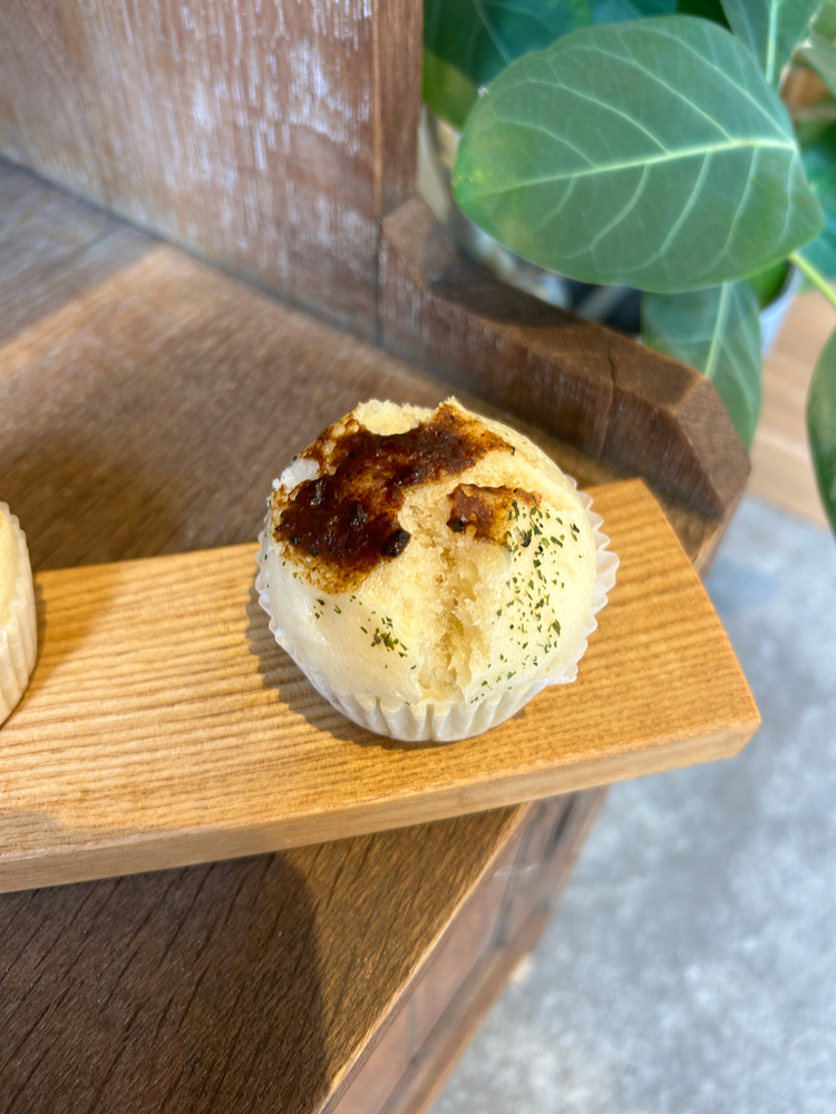 肉みそ大葉蒸しパン。しっかり味の肉味噌と爽やかな大葉の組み合わせが人気の蒸しパン。