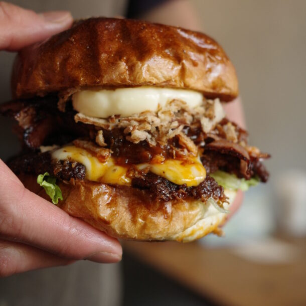 埼玉アメ車のフードトラックでお届けする、ここでしか食べられないスマッシュバーガーをお楽しみください。