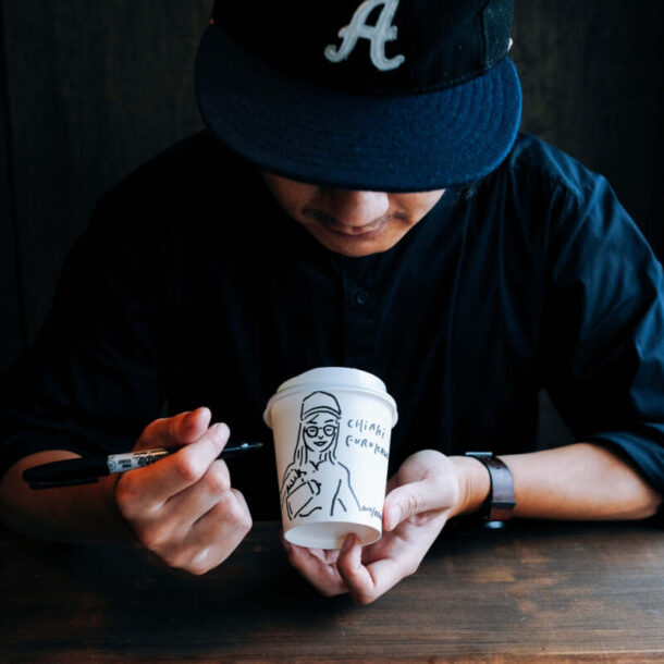 台湾台北出身のアーティスト・「WHOSMiNG」。“旅とコーヒー”をテーマに創作し、世界各地で活動。今回は似顔絵を実施。