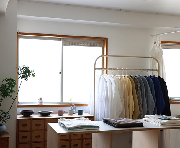 東京家の空間、生活の情景をイメージしながら“永くつき合える服”を目指し、人と服が出会う瞬間を楽しみに仕立てています。