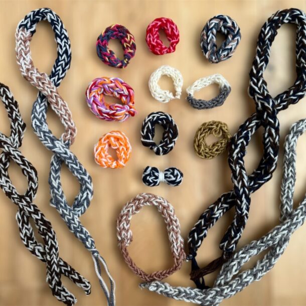 物作りが大好きな小学4年生の男の子が、心を込めて作ったゆびあみ小物。実演販売もします!