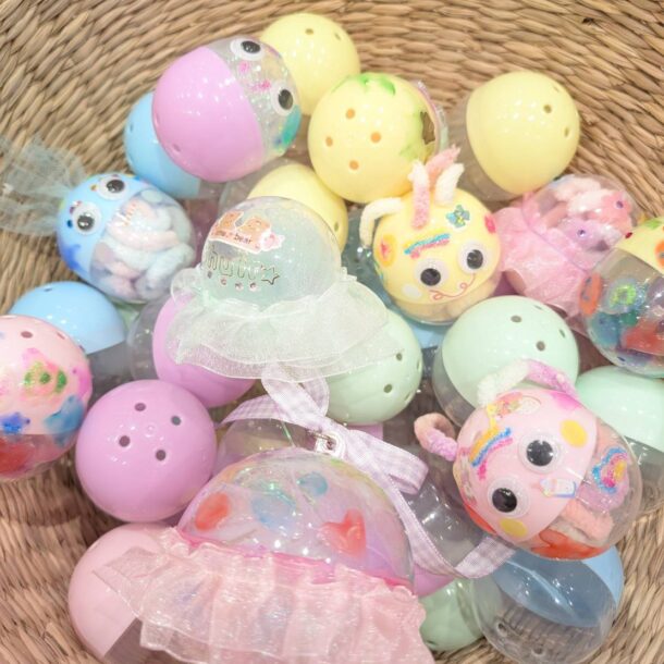 ガチャカプセルに手作りシールを貼って、モール、LEDライトを入れて自分だけのランタンを作るお店です!